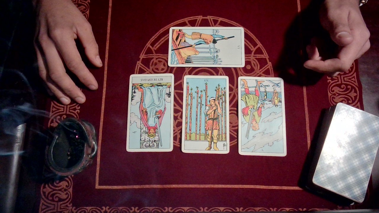 Knight of swords three of wands seven of swords all reversed
