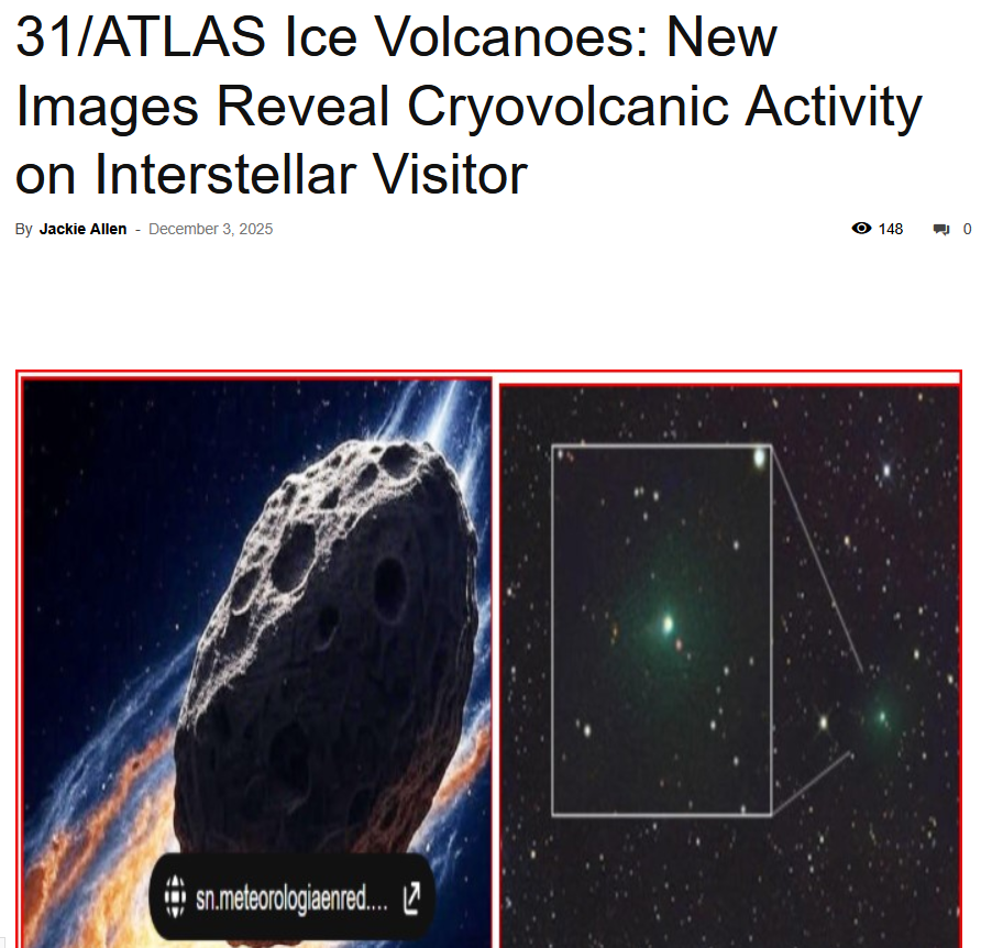 >Channelshttps://www.youtube.com/@DiegoSanAraujohttps://www.youtube.com/@DobsonianPowerhttps://www.youtube.com/@TheAngryAstronauthttps://www.youtube.com/@GaleriaDoMeteoritohttps://www.youtube.com/@StefanBurnshttps://www.youtube.com/@JohnLenardWalsonhttps://www.youtube.com/@CristinaGhttps://www.youtube.com/@RaysAstrophotographyhttps://www.youtube.com/@ChucksAstrophotography>InvestigationsAvi Loeb: https://avi-loeb.medium.com/Joe Poff: https://medium.com/@joe_poffObjective, open-source work on 3I/A from Miami Herald reporter: https://usaherald.com/author/samuel-lopez/~~Shiva~~: https://archive.is/https://medium.com/@ShivaMeucci/*https://archive.is/Q6ytv/imagehttps://archive.is/p04KeOriginal NASA livestream:~~https://www.youtube.com/live/A5SUq2eDXg~~ (delisted)>JWST raw data:https://www.jameswebbdiscovery.com/https://jwst.readthedocs.io/en/latest/jwst/outlier_detection/main.htmlhttps://www.galactic-hunter.com/post/jwst-data>Memoryhole sink, potentially related oddities:JWST report from Oct.https://www.snopes.com/fact-check/james-webb-space-telescope-spotted-spaceship/NASA metadata error:https://medium.com/@earthexistclothing/mega-metadata-mistake-3i-atlas-356f53d3a299Black Hole Sunshttps://www.sciencedaily.com/releases/2025/11/251127102115.htmKuiper belt anomalieshttps://phys.org/news/2025-11-potentially-distinct-kuiper-belt-clustering.htmlLunar 'last quarter phase' timing:https://medium.com/@earthexistclothing/12-12-25-3i-atlas-d1c05b5d30d8 :