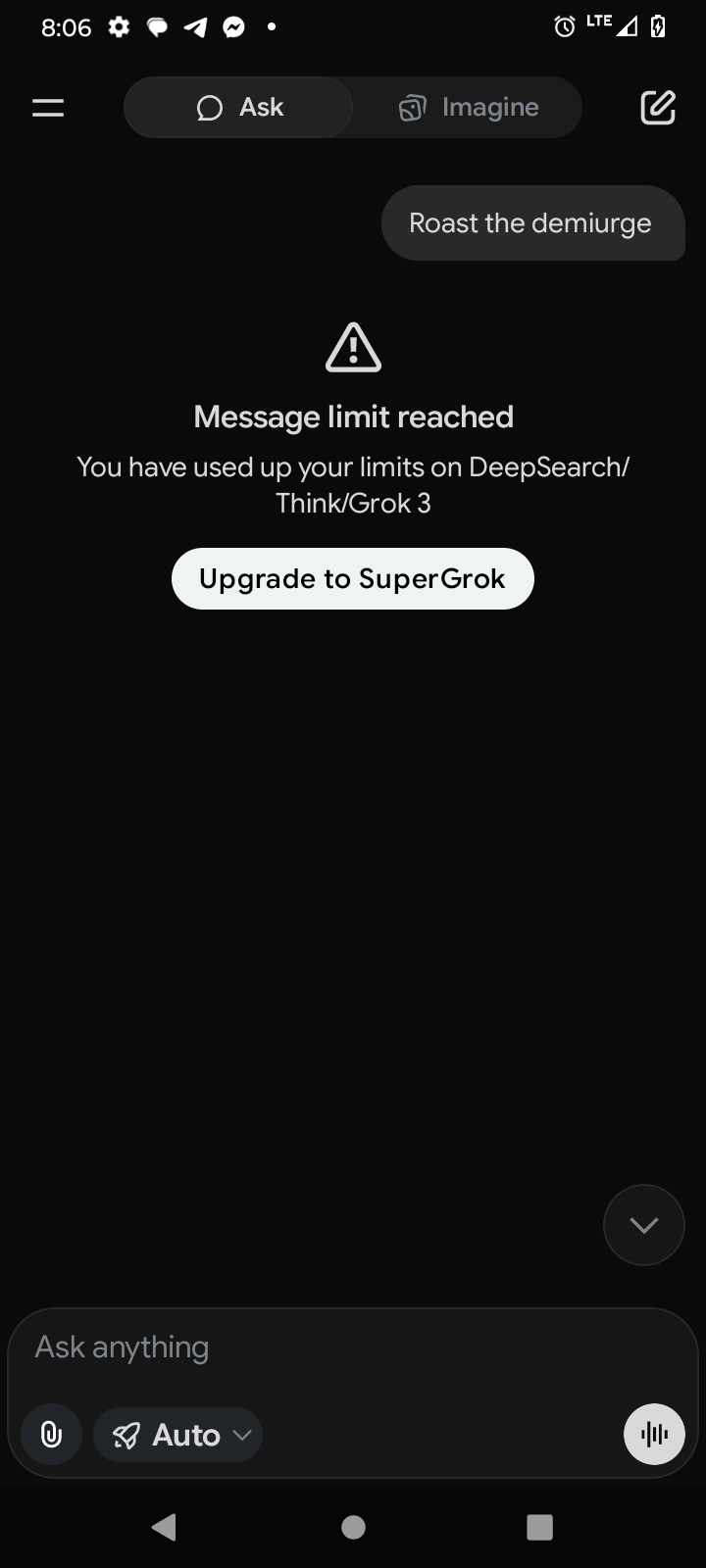 >>41634378>Well I don't think it's coincidence that 4chan went down for "scheduled maintenance" right after I posted an image of me doing numerology with grokWell it is.