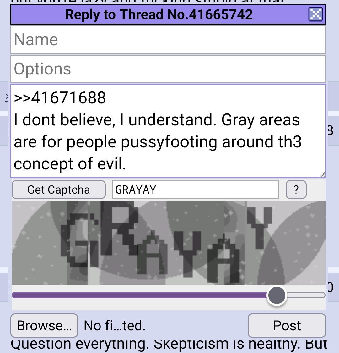 >>41671688I dont believe, I understand. Gray areas are for people pussyfooting around th3 concept of evil.