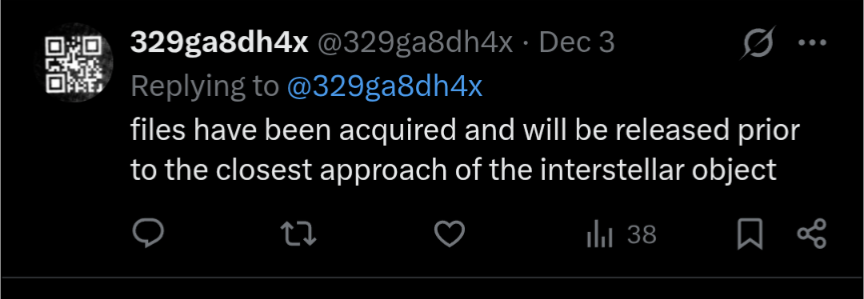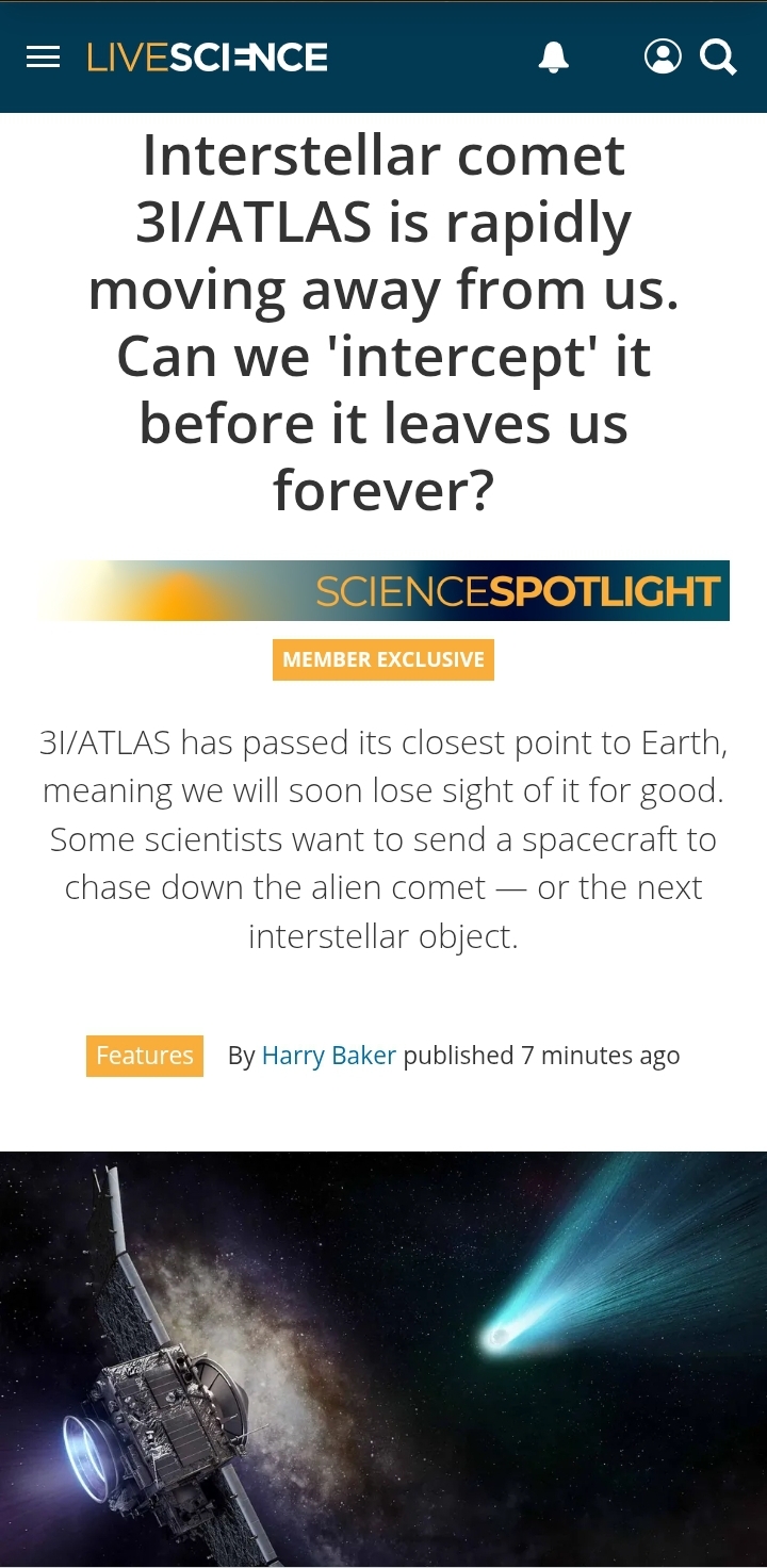 >Channelshttps://www.youtube.com/@DiegoSanAraujohttps://www.youtube.com/@DobsonianPowerhttps://www.youtube.com/@TheAngryAstronauthttps://www.youtube.com/@GaleriaDoMeteoritohttps://www.youtube.com/@StefanBurnshttps://www.youtube.com/@JohnLenardWalsonhttps://www.youtube.com/@CristinaGhttps://www.youtube.com/@RaysAstrophotographyhttps://www.youtube.com/@ChucksAstrophotography>InvestigationsAvi Loeb: https://avi-loeb.medium.com/Joe Poff: https://medium.com/@joe_poffObjective, open-source work on 3I/A from Miami Herald reporter: https://usaherald.com/author/samuel-lopez/Astronomer's News: https://www.astronomerstelegram.org/~~Shiva~~: https://medium.com/@ShivaMeucci (unbanned but no new posts)https://archive.is/Q6ytv/imagehttps://archive.is/p04KeOriginal NASA livestream:~~https://www.youtube.com/live/A5SUq2eDXg~~ (delisted)>JWST raw data:https://www.jameswebbdiscovery.com/https://jwst.readthedocs.io/en/latest/jwst/outlier_detection/main.htmlhttps://www.galactic-hunter.com/post/jwst-data>Memoryhole sink, potentially related oddities:JWST report from Oct.https://www.snopes.com/fact-check/james-webb-space-telescope-spotted-spaceship/NASA metadata error:https://medium.com/@earthexistclothing/mega-metadata-mistake-3i-atlas-356f53d3a299Apparent meddling/withholding of lightcurve data;Hubble uses a 10x longer exposure when 3I/A is close than far away; an absurdly incompetent decision that hides the nucleus;Radar imaging could be used to identify the nucleus and hasn't been;Black Hole Sunshttps://www.sciencedaily.com/releases/2025/11/251127102115.htmKuiper belt anomalieshttps://phys.org/news/2025-11-potentially-distinct-kuiper-belt-clustering.htmlLunar 'last quarter phase' timing:https://medium.com/@earthexistclothing/12-12-25-3i-atlas-d1c05b5d30d8