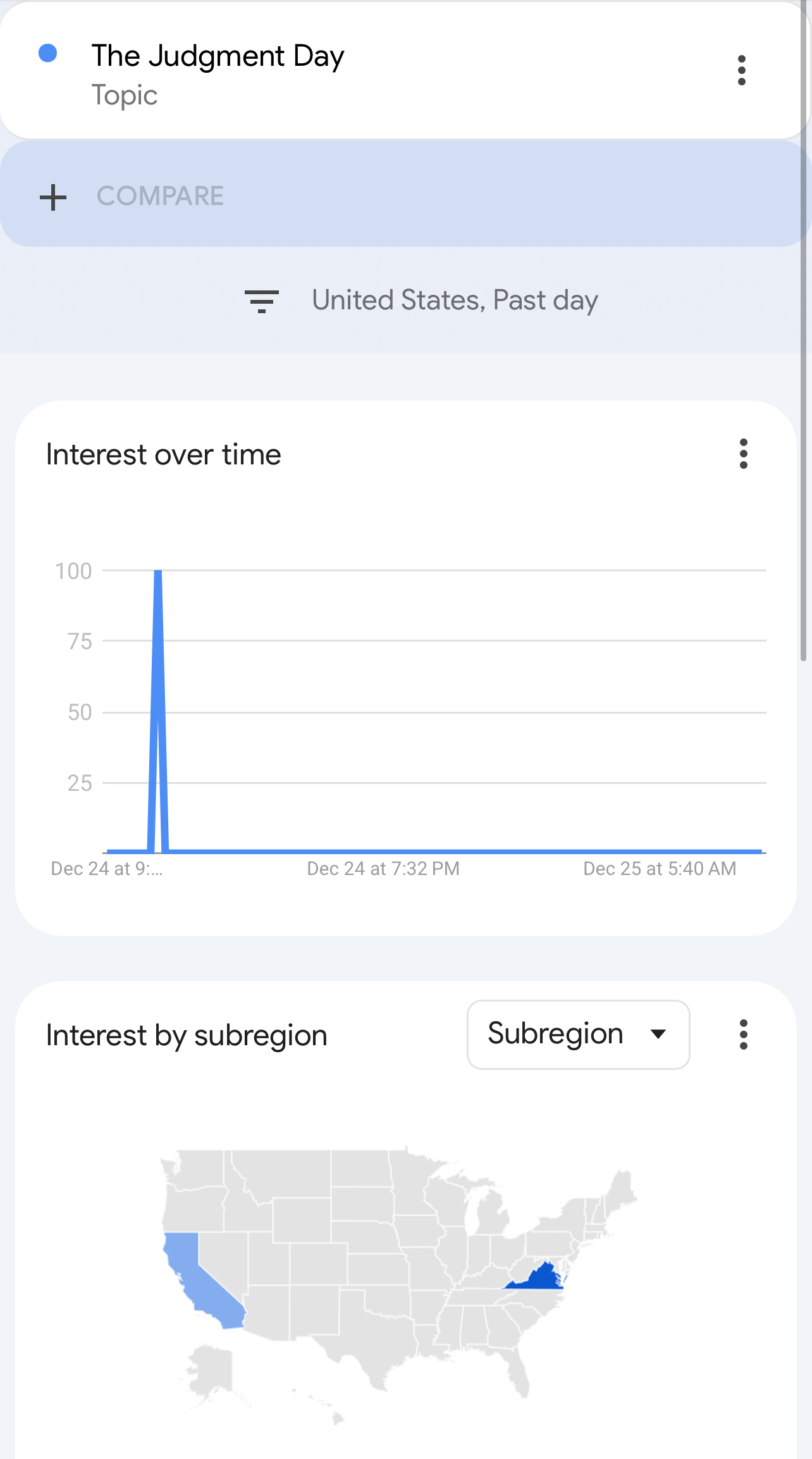 Spike at the same time as the others. This time in Virginia and California. Wtf is going on? Is 3I atlas actually an angel or something?