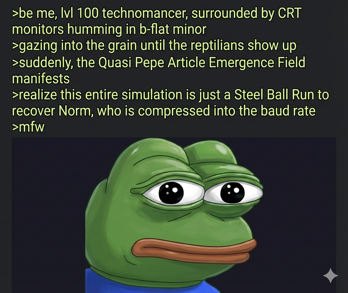 >>41736391There seems to be a synchronized effort from the forces of darkness the last few days that has been squeezing the pressure on people's minds with whatever fucked up satanic tech they got going on this time. quantum ai fuckery.