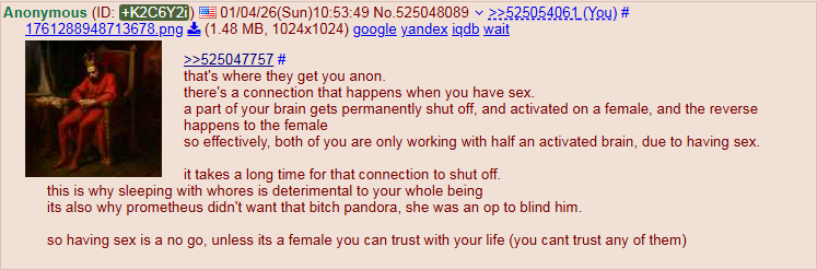 >>41764079>The act itself can truly only debase you, unless its with a good woman.BS. There's no such thing as a good woman because that is subjective. There are women, and lot of them. Don't put sex on pedestal as if it is something holy. Sex is not holy. Animals fuck all the time. Animals rape each other. Sex is just biology. This anon is probably a christian and is biased by the morals of the bible and he thinks fucking a whore is worst than fucking a regular woman. But the truth is tjat in the end of the day it's the same thing. The difference is that if you pay for sex you don't have all that trouble of having to seduce a woman. You skip that part. It's just that. I'm not saying that the peopel here should fuck whores, that's not what I'm telling them. What I'm telling them is that fucking a whore or a "regular" woman feels the same. Like, qhat makes you sure that the "good woman" that you seduce don't have a dark past? You can't know that. People fake all the time. People li.e Women lie. Men lie. Everybody lies. God lies.