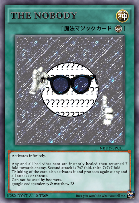 >>417680834U. I take this very serious, because they've unironically tried to redirect the nobodies fate.