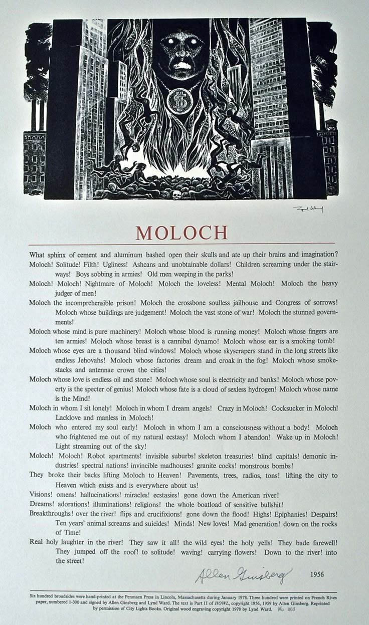>if everyone hates the current system, who perpetuates it? And Ginsberg answers: “Moloch”