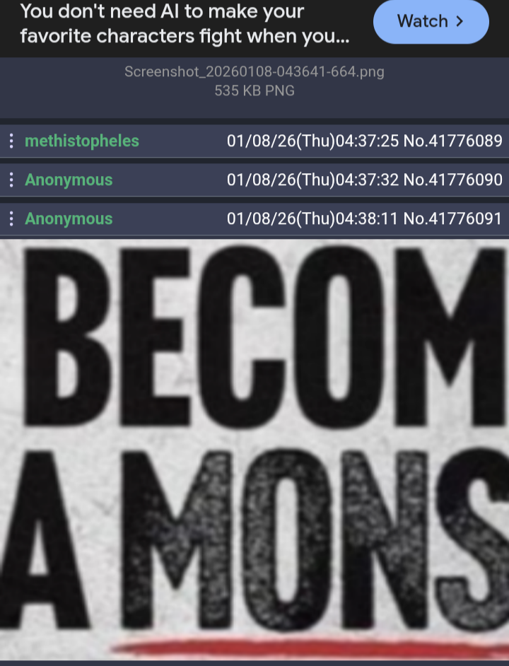 >>41777010You have complained in this thread for some time now. Has it brought you the answers you seek? Perhaps if you do it more, one day suddenly you will get them. Do you see the issue here?>>41777016There is humanity in channeling that rage such that you can cull human traffickers with your own hands. That your blade can feel their flesh, that you can taste their blood. Vengeance is very human indeed.>>41777018Prove to us all that you are better, if you feel so wounded.>>41777023To be wounded by constructive advice is to wound oneself. A self-inflicted crime.Grow, overcome, and be the reckoning you were destined to become.https://www.youtube.com/watch?v=pgtkvcKmABM