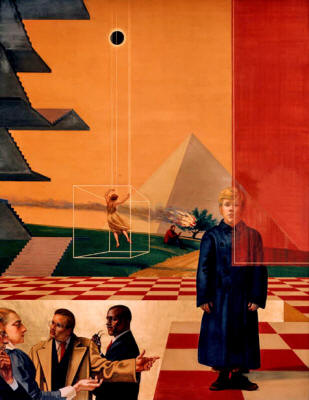 >>41786032>Does anyone know anything definitive about it?Sadly nothing definitive! - but I share your fascination with the topic. >The doctrine of the Black Sun, reaching back to ancient Sumer and Akkadia, is that there are two suns, the "white" sun, the sun that we see at the center of our physical solar system, and the "black" sun, a "hidden" sun of (spiritual) illumination. In some versions of the myth, it is thought to reside at the center of our galaxy. Other embellishments place it as one of the causes of the immortality and reincarnation of the soul. https://www.bibliotecapleyades.net/sociopolitica/reichblacksun/chapter11.htmThe Thule/Vril/SS rabbit hole is deep enough in itself. I'm more interested in the Hermetic and Alchemical paths and, as such, the inclusion of the symbol in the Bank of America frescoes is significant...> Hermetic traditions teach the existence of two suns, an invisible and etheric one made of pure “philosophical gold” and the material one, the only one the profane can perceive, known as the Black Sun. In alchemy, the black sun (Sol niger) is the name of the result of the first stage of the Opus Magnum. The alchemical Magnum Opus (or Great Work) starts with the “blackening” - the calcination of crude metals - and ends with their transmutation into pure gold.Today, the symbol of the Black Sun is mostly associated with esoteric Nazism and cults such as the Temple of Set... and, once again, the Denver International Airport. Floor design in the DIA depicting a black sun moving in front of the golden sun The right fresco therefore seems to portray the first step of a “Great Work” that needs to be accomplished, as symbolically represented by the black sun.https://www.bibliotecapleyades.net/sociopolitica/sociopol_brotherhoodss41.htm