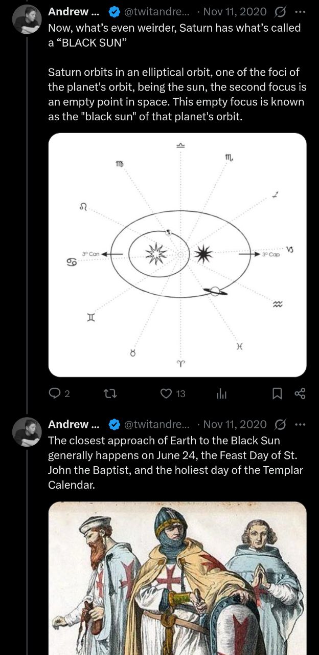 >>41786032There were/are fringe beliefs that Saturn used to be a second sun in our solar system which was a dark purple color. Thusly the black sun would represent El or Saturn/Chronos, Anu, etc. This is as apposed to Shamash perhaps who represented our sun as commonly known.