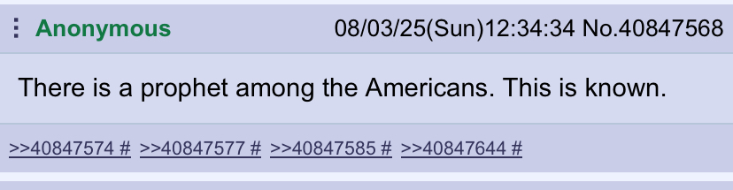 >>41796786The kind who have actually seen the divine and are humble enough to know compared to God I am just a silly stupid little goof ball so I shouldn't worry about ego and instead focus on God's greatest gift . . .>lovePerhaps I am a mad man, or perhaps your insulting your own messiah? If your a jew only prophets see the divine and angels right? What do you think God is doing right now . . . Laughing at our egos . . . Men who think themselves powerful but don't know and have never witnessed true power . . . To near witness to the supernatural is to indeed accept that you are an idiot and it's all relative for who isn't an idiot when faced with the mysteries and magnificent nature of God's creation! And I know exactly who and what you are! For the trappings of the synagogue of Satan are wrapped tightly around your tounge and mind . . . I can see it better than you can fren.