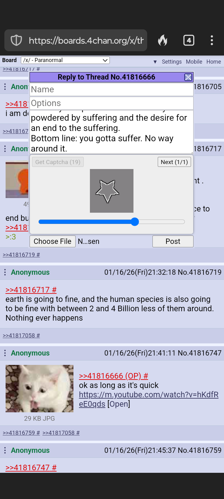 >>41816673Wasn’t a question but a statement .>>41816670>>41816705I mean I want the earth experience to end but not for anyone to suffer, is that contradictory?>>41816702>:3