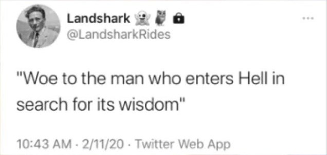 I entered hell for it's wisdom and came out stronger and more pure.