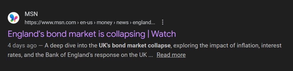 >>41826378What incredible timing. The Bank of England is experiencing a bond market crisis threatening to tank the British pound. But lucky for them, they can just blame the aliens for the economic crisis instead.