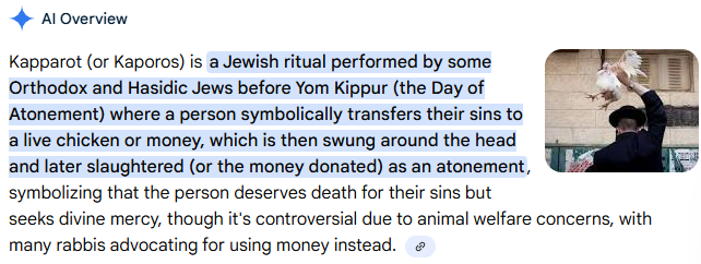 >>41828547Show me a different definition of the Jewish custom Kapparot then. Otherwise you are yapping for no reason.