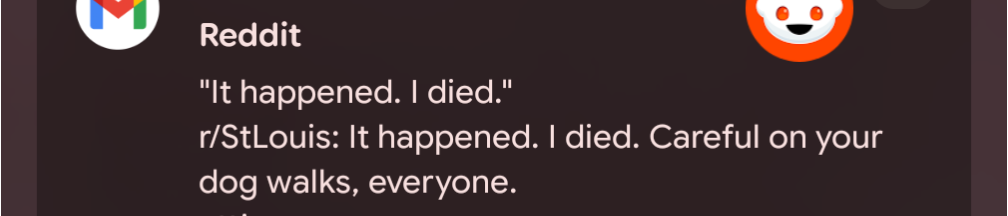 I miss walks. I used to live in a walkable neighborhood and used the randonautica app once to choose a random point to walk to. I had set my intention to "see something interesting."Walked like five miles and didn't see shit but on my way home people in weird fancy clothes were pumping gas into a rolls Royce and acting like they didn't want to be seen or looked at. My dogs are getting older I should find a way to go on more walks. Weird as I was waiting for the captcha to load I got this reddit email notification. Idk what to make of that.