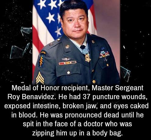 >>41865519>When he arrived at Fort Sam Houston in Texas, doctors broke the worst of the news: the damage to his spine was too severe. Benavidez learned that he might never walk again, and would be medically discharged from the Army.>Roy Benavidez had other ideas. Refusing to quit and determined to return to his comrades, he began a nightly personal training routine to return to service.>>41866026Yeah, Christianity seems very comfy oftentimes and the regular, down-to-Earth people always seem to be one of the most happiest and confident people out there. But you know as they say afterall, ignorance is bliss. I believe the Bible contains half truths, but also half lies. And happy Christians adore the half-truths, but conveniently ignores the half-lies. Not because they're trying to be maliciously deceptive, but because ignorance is bliss afterall. And that seems to be good enough for them.