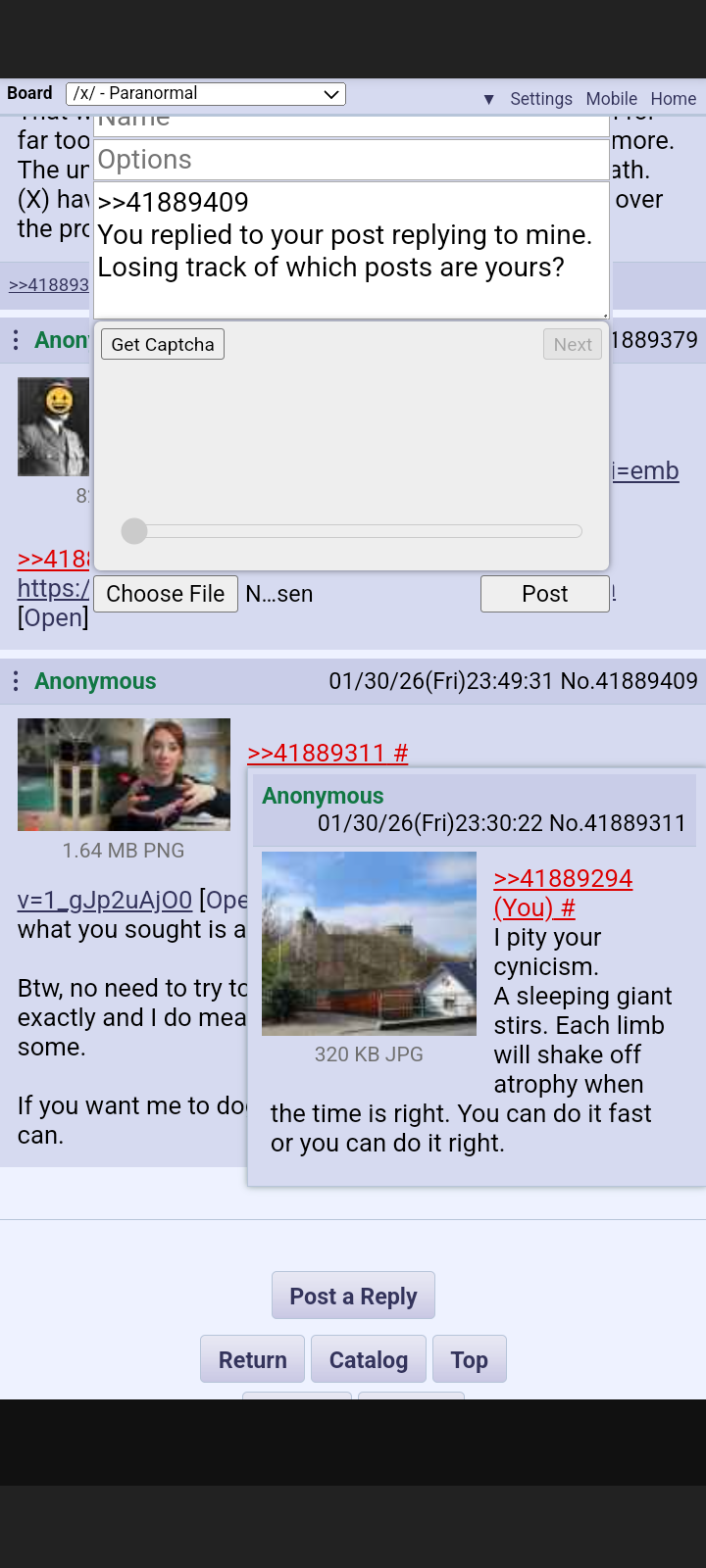 >>41884420The namefag in question was all over the place with colors and they used a lot of movie references. Other anons called them out for their shenanigans and they got a lot of nasty replies too, kek.They ultimately made the thread about them being a martian messiah trans woman twin thing. It was a fun thread just to lurk but then the janny just started deleting post after post of namefag's posts giving them "/x/ cred". One poster seemed to believe that the namefag was a professor and another thought they were either an initiate or shaman. Kek.