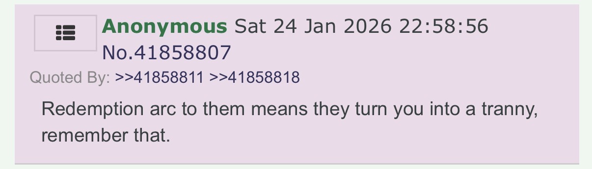 >>41887131I feel like they might've realized they've always been in a trap.And when they see what exactly all that entails, they're thrashing around.They always do this too, it's hilarious.