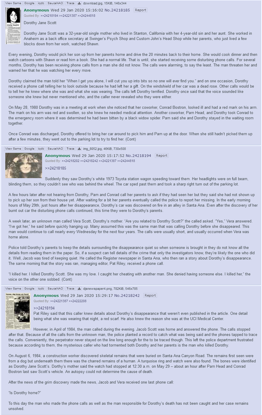 >>41889433https://findjonathanhoang.com/faq/>Jonathan also likes “researching” online via YouTube (but has no YouTube account). He has an interest in cryptids (animals whose existence is debated or unproven by science, like Bigfoot) and modern folklore (like Krampus and Slender Man).>What if I had a psychic premonition about Jonathan?>Our family does not subscribe to or believe in psychics, tarot card readers, highly intuitive premonitions, visions, or any other metaphysical manifestations. Though skeptical, we have already listened to and followed some leads from psychics, and none have been helpful, accurate, or credible. No leads from psychics have been consistent, and many told us Jonathan would be found deceased in various locations with vague descriptions. At this time, we are focusing our efforts on tangible tips and sightings that are actionable.lol