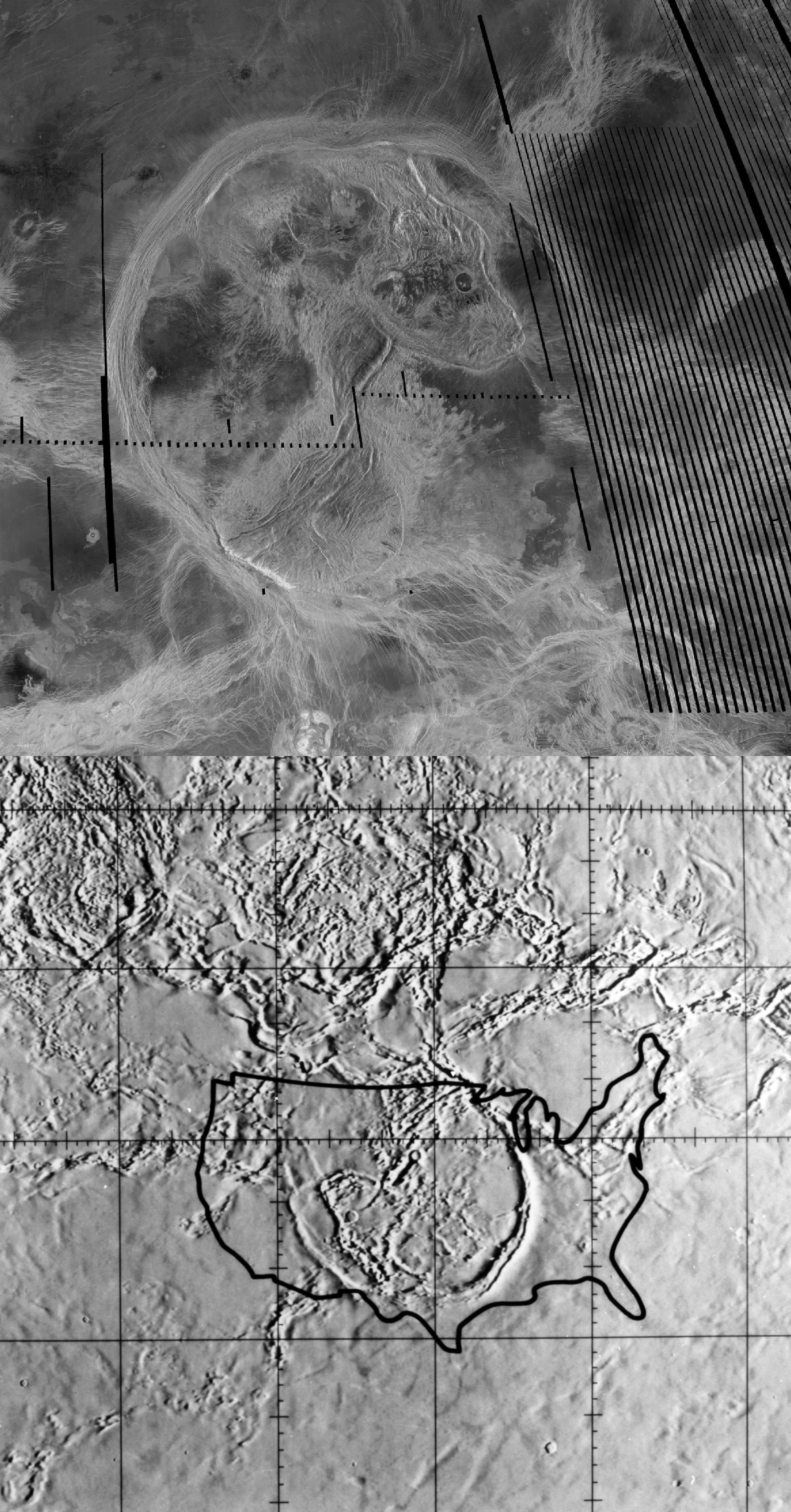That is Artemis Corona on Venus superimposed over a map of the USA to show scale. https://en.wikipedia.org/wiki/Artemis_Corona