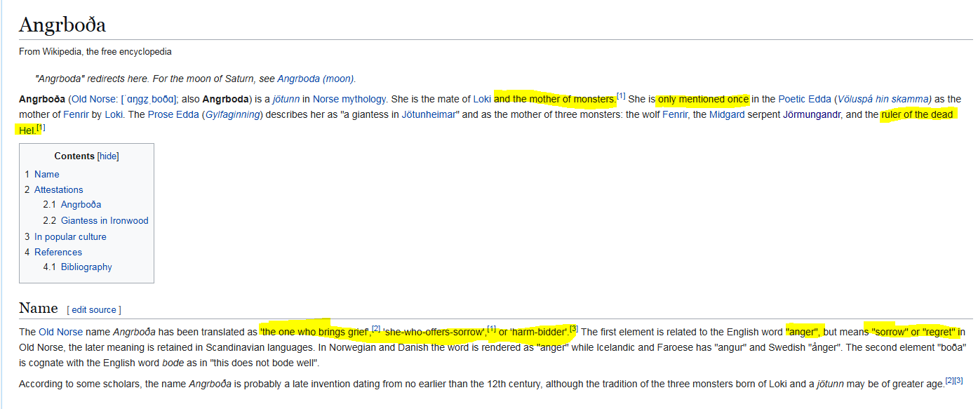 >>41936882lol "Angrboða" just means "unworthy of having a name". Humans may call cows "daisy" or dogs "zeus" but those arent actual names, you could try translating "Angrboða" as literal "Beast".