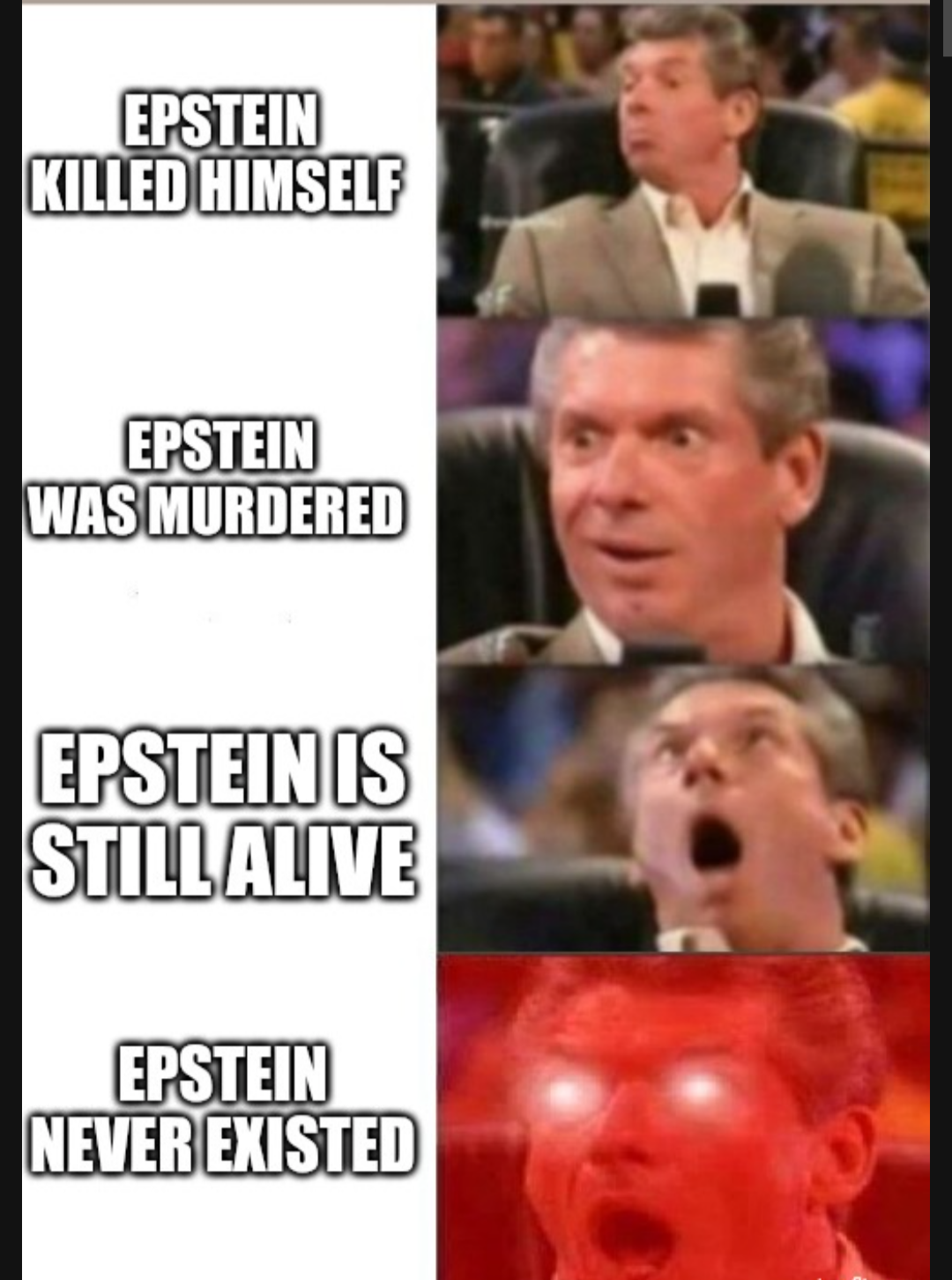 When I see him I think of the Tim Osman - Osama Bin Laden rumor, as if he was Epstein was an alias, and yes, I believe he got away with a trove of blackmail material/state secrets after faking his death. Even though nobody has gone to jail yet he's done more damage to the government/elite than Julian Assange, who they too wanted to kill, but its WEIRD that almost nobody in leadership said good riddance, the military and politicians were pretty vocal about how they felt toward Julian, not toward Epstein, so yeah he definitely has dirt on a lot of people and they will continue to fear what he possessed after his death if he's really gone.