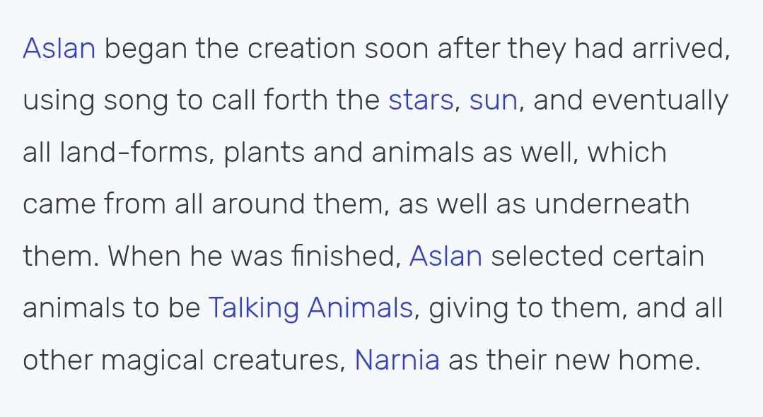 OK back to topic:WHY is it my fav?Because 5yo me read about a world being born from the VOID with Aslan SINGING and life appearing in HARMONY to his song. Sure christcuckery blabla but a christian raised child is not gonna receive these thoughts from anywhere else.