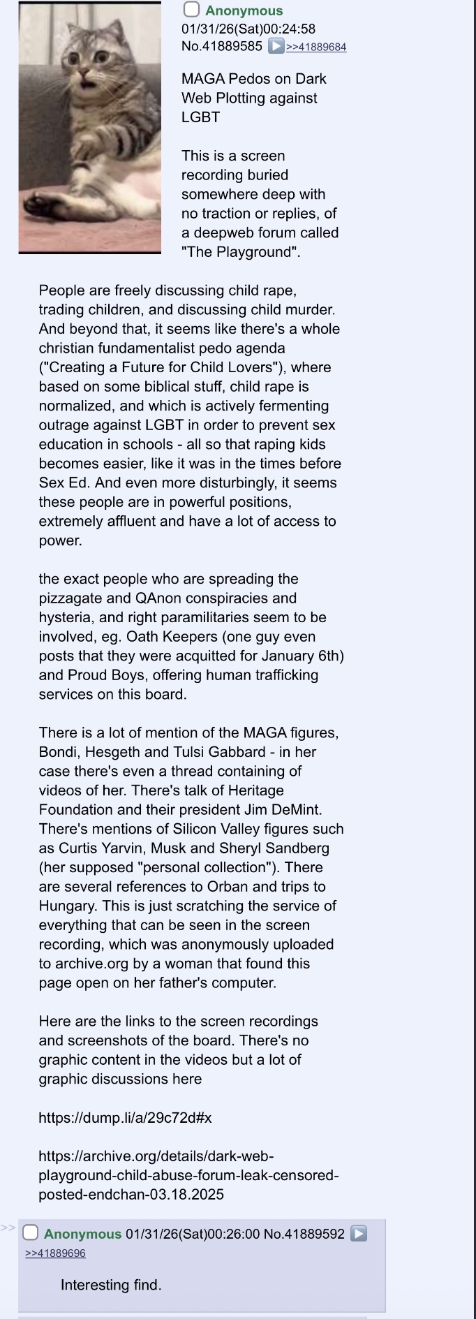 >>41981275> O9A is a bunch of nazi faggot pedophilesyou must have missed the dark web anon that posted about stuff like that a little while ago picrelhere’s the thread: >https://archive.4plebs.org/x/thread/41889585shit got slid to hell but barely anyone replied anyway, because really what do you say when it’s pedos all the way down