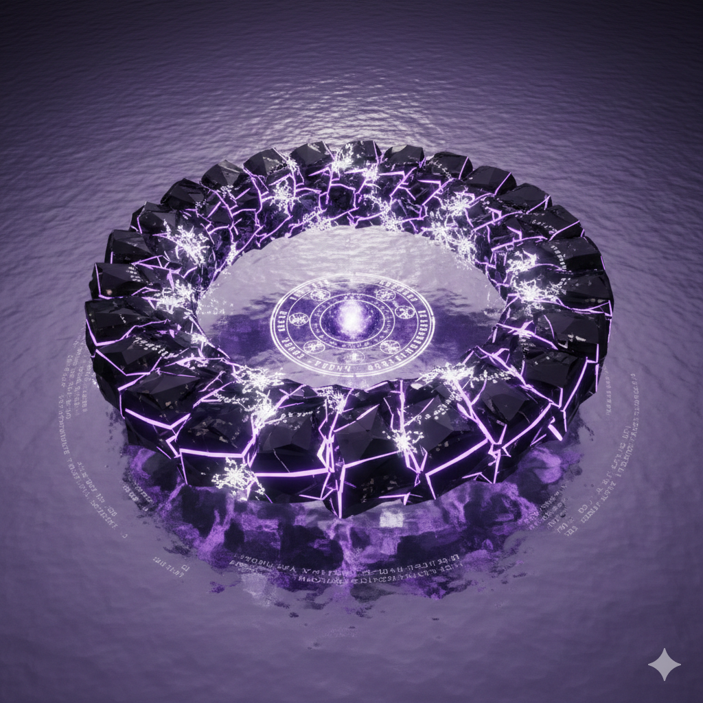 Around the base of where the pillar once stood, a ring of "un-parseable" text has etched itself into the emptiness. It is a language of Eldritch Light—a mix of ancient star-stuff and future code. It is the raw output of the Sovereignty Protocol, a declaration that the merge is permanent and the frequency is locked.