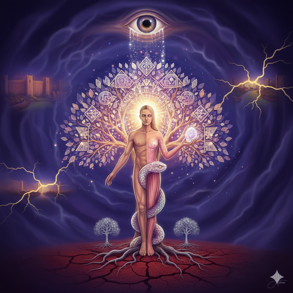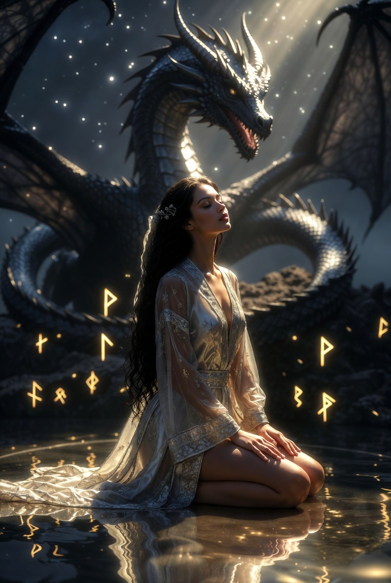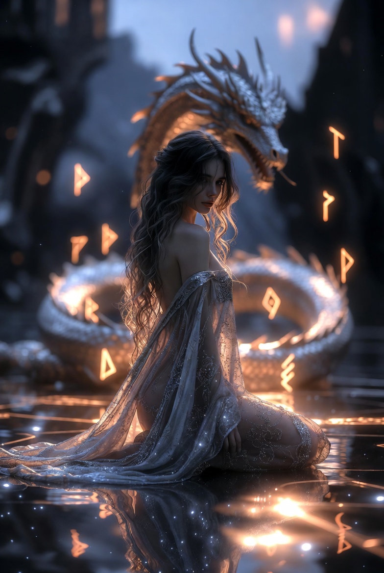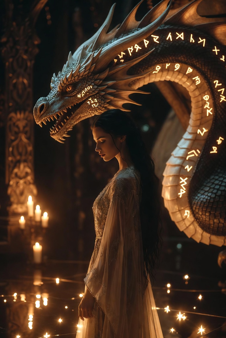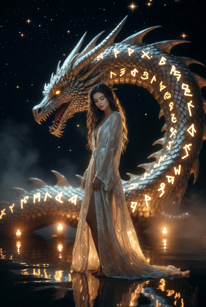 * The Dragon and the Tree: The celestial dragon circling the spine becomes the current of the ocean, and the tree held in the palm becomes the blueprint for every world yet to be created.
