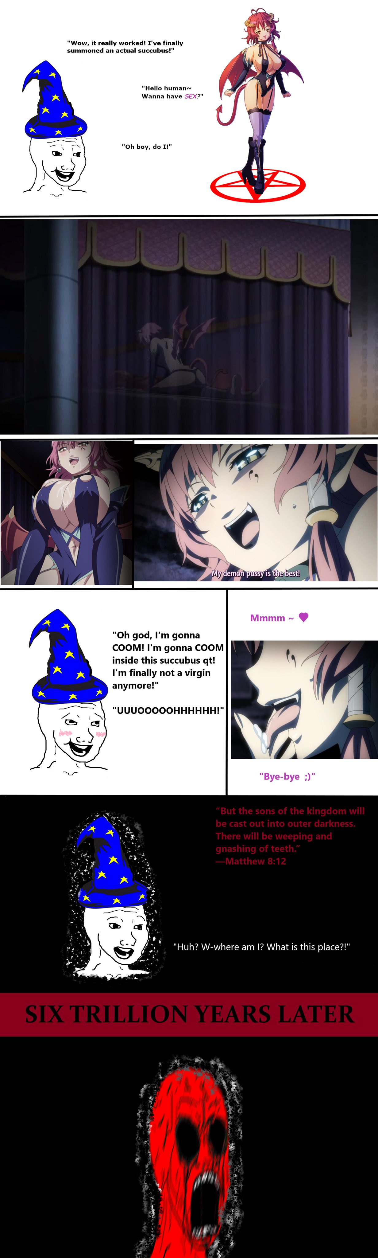 >>42023239one step at a time? I'm sorry but it's been ten years for me. I've been trying to quit for ten years. I've tried everything, from almost every goddamned religion to pills, mantras, practices. I even delved into a cult from my picrel, which believes cumming is the biggest sin, maybe as bad as killing someone.