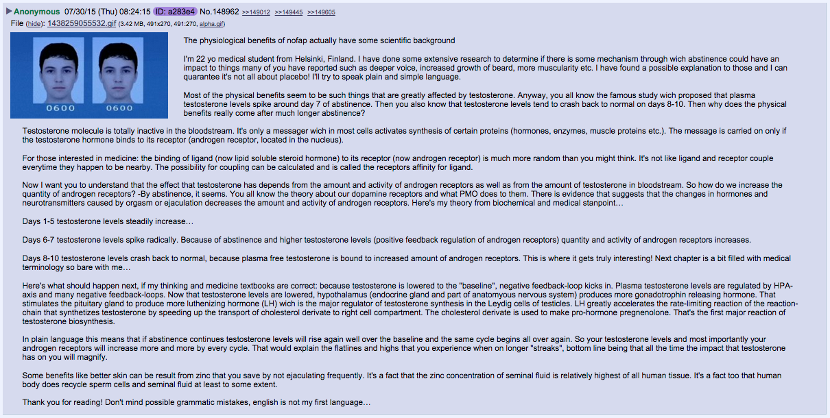 >>42023767>neither testosterone or DHT are affected long term by semen retention