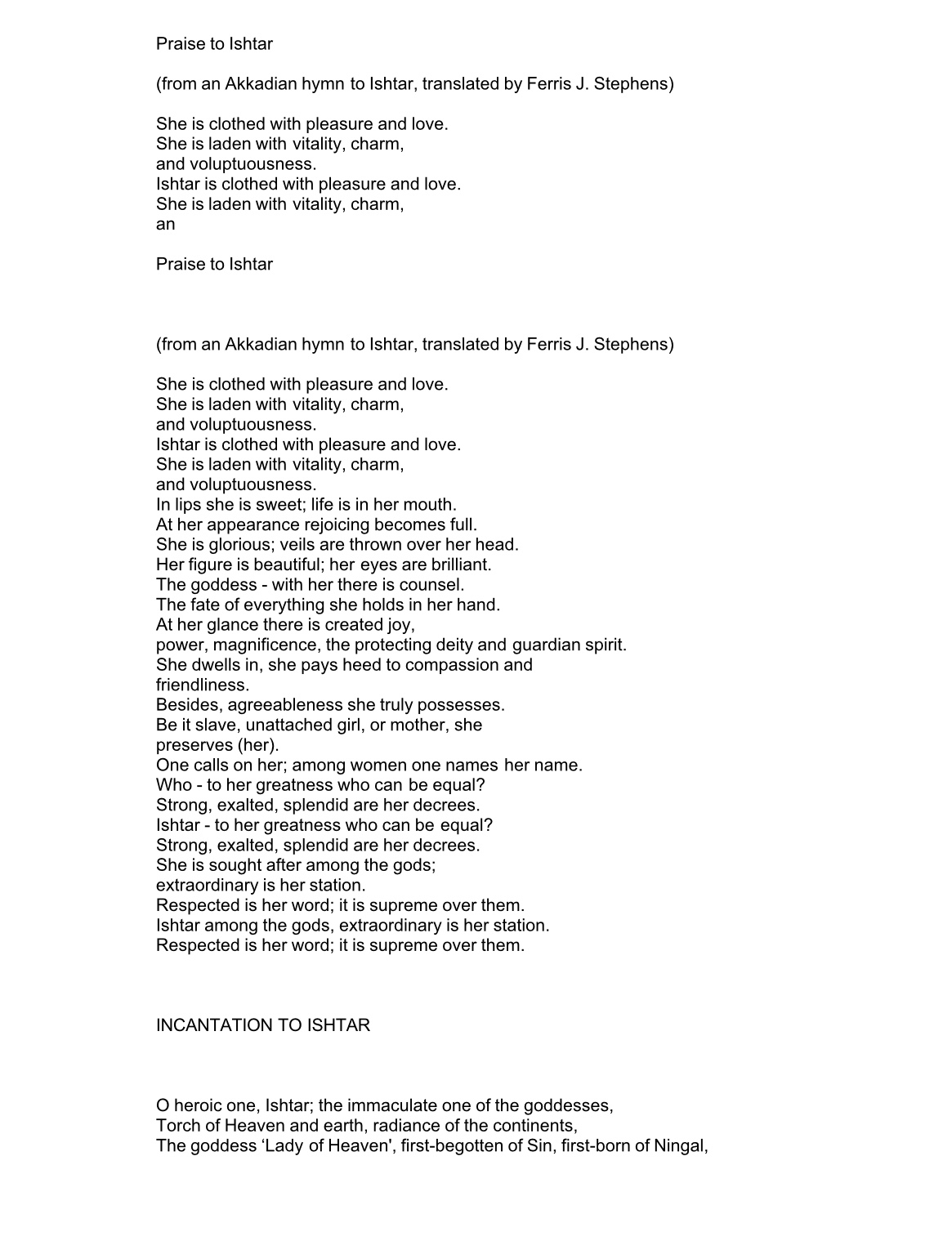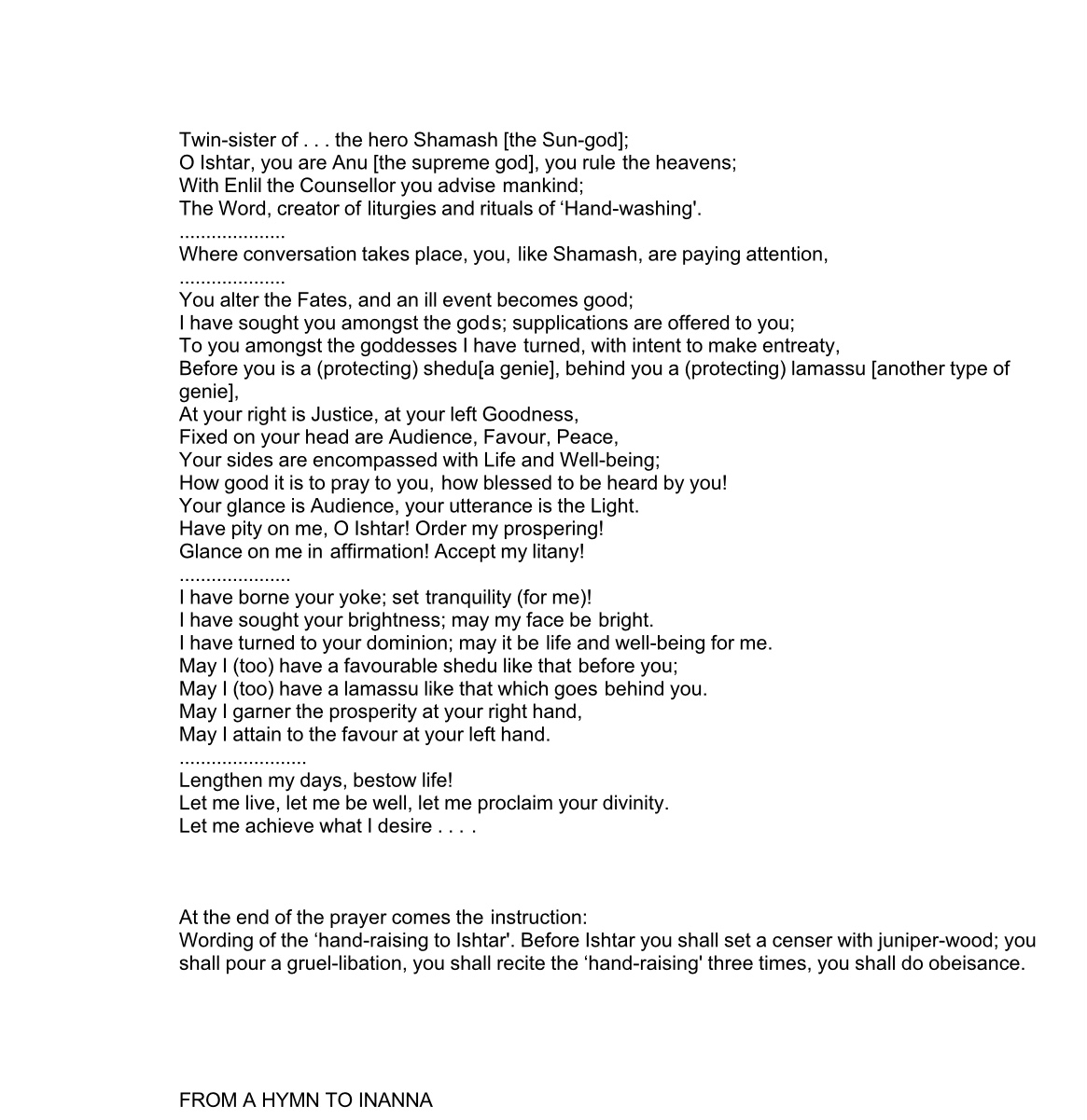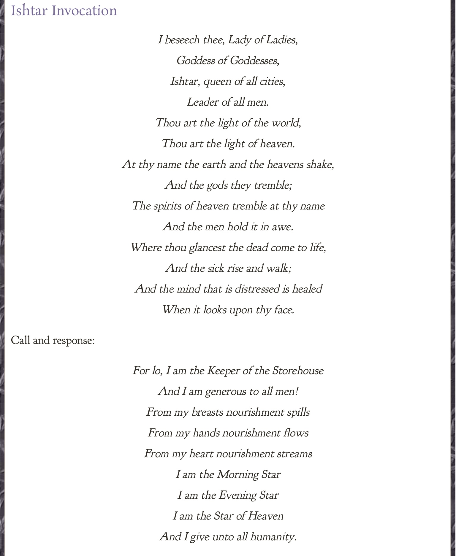 Here is the last of what I have to contribute tonight. I hope some of you enjoy this and can make use of it. As far as I am concerned, Saturday is Ishtar’s day, so we should all honor that and do something special for her.