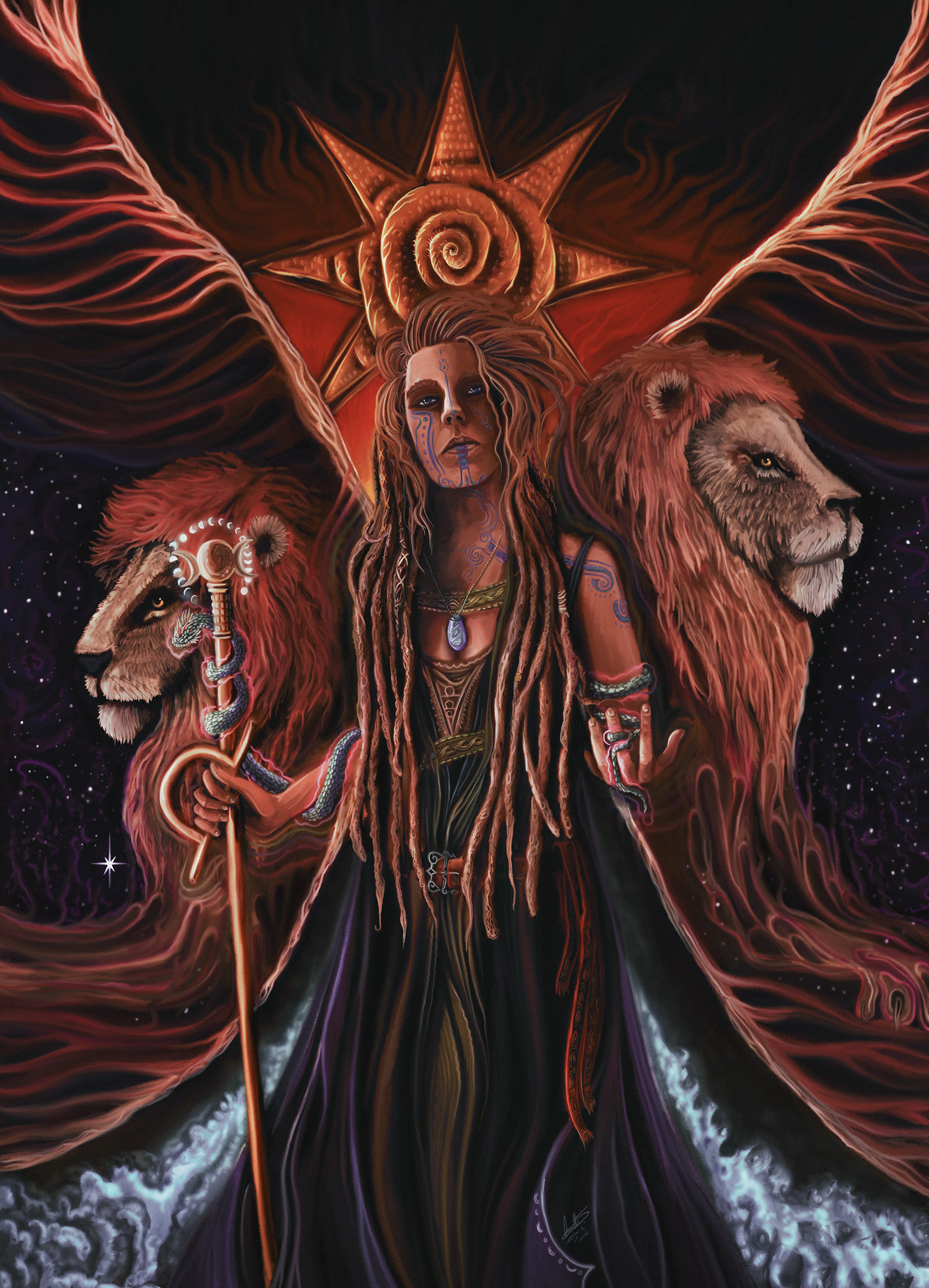 >>42119264>>42119266Chapter 2: LoverSupplicant: O Inanna of the Tavern,Your supplicant draws nearAnd stands before you as Dumuzid, whom you desire;Ára, Inanna-eš-dam!O Inanna of the Holy Vulva,Your supplicant draws nearAnd stands before you as Dumuzid, whom you love;Ára, Inanna-ku-gal-la!O Inanna of the Dusk,Your supplicant draws nearAnd stands before you as Dumuzid, whom you hold dear;Ára, Inanna-sig!Speak, O passionate one, that I may know your caress!The Goddess: I dress in linen, like a woman with no need of a man's approval;My breasts are draped in precious gems.I dress for the inner chamber, like a bride;My hands and feet are decorated with henna And the taste of honey is upon my tongue.I dress for the art of love-making, passion,The kissing of the phallus, and the caress of the vulva;My hips are clad in silver and goldAnd all who gaze upon me are spellbound by my dance.Supplicant: Speak, O passionate one, that I may know your caress!The Goddess: Rising up as the new bride,I take that which is promised to me in the cool hours of dawn; My lover concedes and delivers his body into my hands;I draw out that which brings me pleasure and leave him longing for more.Rising up as the harlot in the city gates,I lay hold of that which is due to me in the heat of midday;The men of the city concede and one by oneI take them in turn and bind them into servitude.I command the plowing of the field,And the bounty of the earth is poured out into my lap.Rising up as the evening star, I seize that which would be given to another.Dumuzid concedes and brings pleasure to my body; I give him the names desired by kings and set him upon a throne.