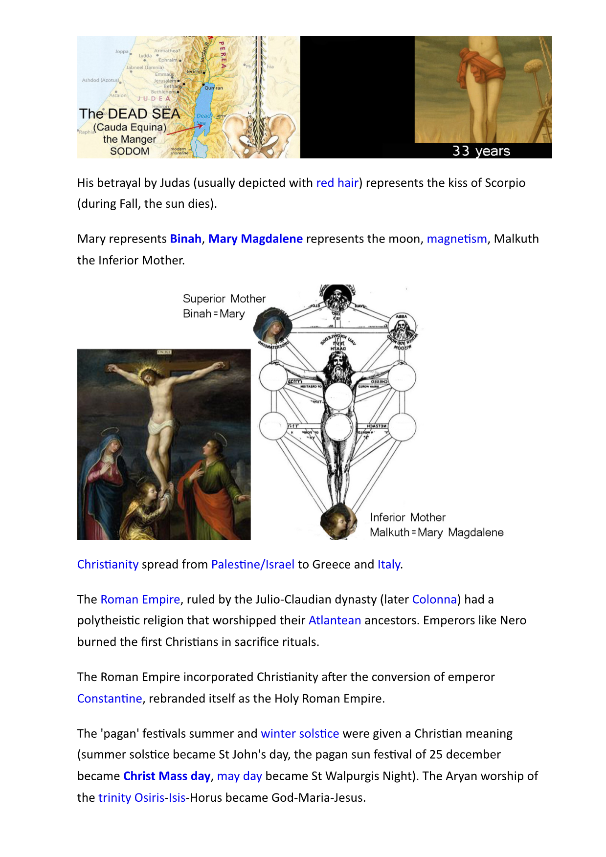 >>42044405They worship the oak as symbol of female chalice, male phallus combined sexual power. They use them as World Tree in their oracle rituals. On Bel-thane, the female fertility rite of 1st of may on the wheel of Bel, a druïd climbs an oak, willow or holly tree with a mistletoe to cut it as crown of the illuminated ones. In rituals of blood sacrifice to the moon, lumps of white quartz is used as 'moon stones' of the mythical white mountain Albe. It is a binary crystal (vibrates at frequencies, multiples of 2) and contains silica. Silica has memory and conducts electromagnetism. The stones are broken and used as knives with 3 points pointing upwards, 3 points pointing downwards, symbol of lightning and the tree of life.The Trinity is a symbol and concept in the doctrine of the Aryan religion of the druids, Judaism, Christianity,.. based on the sacred number 3 and unity/ trinity of soul (heart)-mind-body. Nature creates through the trinity father-mother-child. The Supernal Triad on the Kabbalistic Tree of Life consists Kether-Chokmah-Binah. The Aryans used the the 3fold spiral and triskelion symbol in monuments like Newgrange. In Christianity the Holy Trinity (one eye pyramid symbolism) consists of the Father (God), the Son (Jesus Christ) and the Holy Spirit (pictured as a white dove). The soul consists of neshamah, ruach and nefesh, according to Aristotle of an animal, vegetative and rational soul. In music triads define chords and scales. Religions used a trinity model of father, mother, son: Amun-Mut-Khunsu, Isis-Osiris-Horus, God-Maria (Holy Spirit)-Jesus. Poseidon and Hindu gods (Brahma, Vishnu and Shiva) carried a trident.The moon was worshiped as a triple goddess (maiden-mother-crone, waxing-full-waning).The 9 worlds of the Yggdrasil can be seen as a trinity of 3's. The 3 graces (stages of the moon) pour white sand on the Yggdrasil.