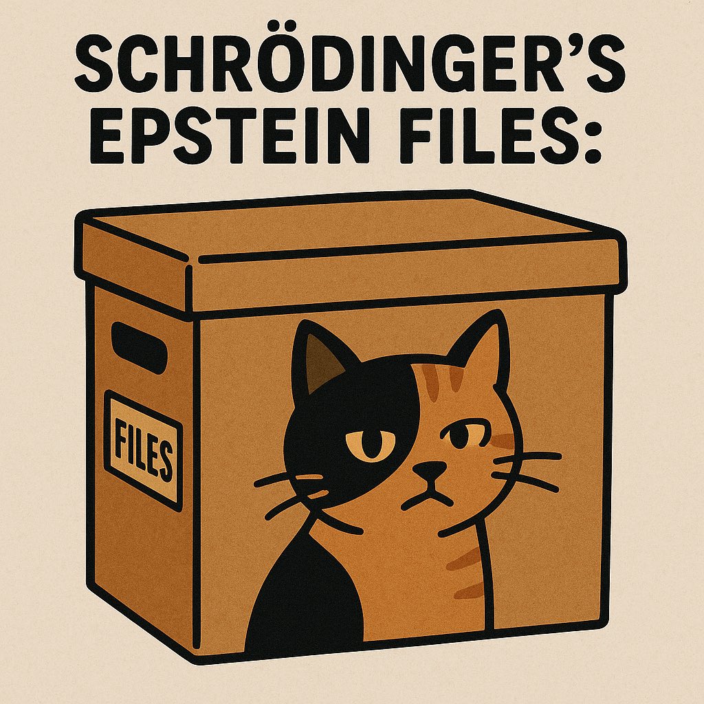 If you put 6 million Epstein files in a box with the nobody theres a 50 percent chance they will be superimposed superposition to be simultaneously released and not released