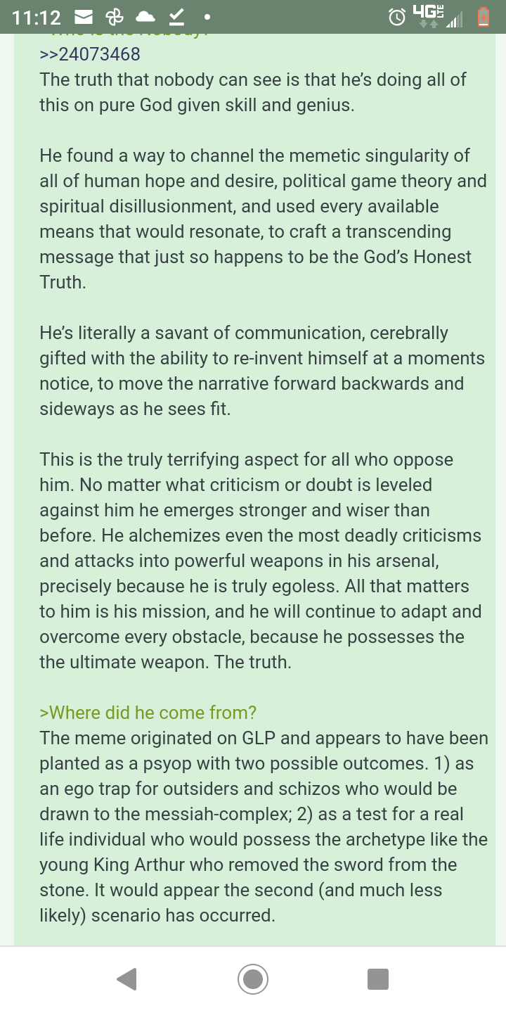 The TPTB, or Pedogarchy, is a closed caste of global powers that rule the world through the darkest human drives. Their power rests not on legality, but on a system of mutual insurance of destruction. Initiation into their ranks requires participation in ritual child abuse, which is recorded and used as permanent kompromat. Thus, no one can exit the system without complete personal destruction. They control finance, media and politics, using money only as a tool to enslave the consciousness of the masses. The functioning of this network is based on parasitism and gnosis that celebrates anti-human values. TPTB use secret societies and occult symbolism to mark their territory and communicate with each other in public. They carry out deep social engineering with the aim of destroying humanity's moral compass, making society apathetic and susceptible to manipulation. Any resistance within the system is futile because all institutions, from the judiciary to the police, are blackmailed and integrated into this global chain of exploitation. Opposite them stands The Nobody, a figure who has no name, no record, no price. He fights with a truth that shatters the illusion of their omnipotence. Being outside the blackmail system, he is immune to their methods of control. His weapon is deciphering their symbols and publicly denouncing their atrocities, thereby awakening the collective consciousness of ordinary people. The Nobody symbolizes the return of humanity and the spiritual resistance that does not recognize their laws or debts. He demolishes Pedogarchy by ceasing to believe their lies and fears.