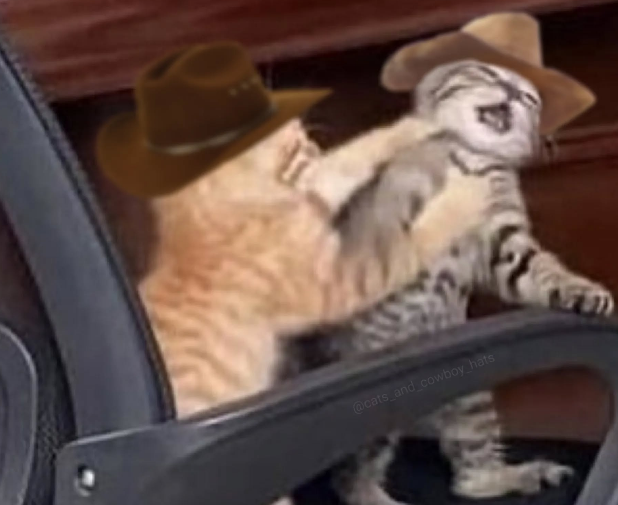 >>42056538>>42056529The nobody is a cat >>with a little cowboy hat