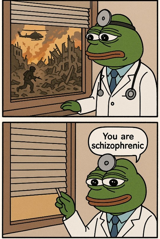 >>42061608Also a NEET schizophrenic here, it's a dice roll whether it's war or asteroid at this point.