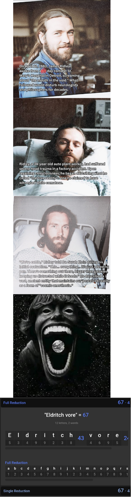 I stumbled across this story after watching a Zack D. Films short. Thought I would make a thread about it here since I do not recall it getting much attention here on /x/. If you want the longer version here is a link to a video that properly tells it:https://youtu.be/81hTMxBWE4k?si=hLasYFeMa1FDXC4VIf you want a quick rundown tho, basically it is about this doctor that makes these hightech glasses/goggles that allow the blind to see and the nonblind to see much better. He did this because his daughter is basically blind. They work and everything is kino for a while, but eventually she starts seeing their world for how it really is. And it really is a stomach of an eldrich entity and humanity is getting digested. Apparently it has us in an illusion to make the process easier or something. Then she rips out her own eyes out of sheer horror.I looked into more and it is hard for me to find a definitive origin of this story. It might be a creepypasta, but I still think there is something to this story. Apparently it got popular enough to warrant several news articles about it. And it seems to be popular on Tikt0k but not YouTube for some reason. I heard that the images are AI, but the story honestly sounds like a decent Lovecraft story, not AI slop. Also keep finding several non related doctors named Robert Miller, which is also weird. Snopes says the whole thing is bunk tho, but you know how Snopes is.What do you anons think about this story? Is it a creepypasta? Is it real? Anyone have any similar experiences with them realizing that they are getting eaten?Thanks in advance as always!