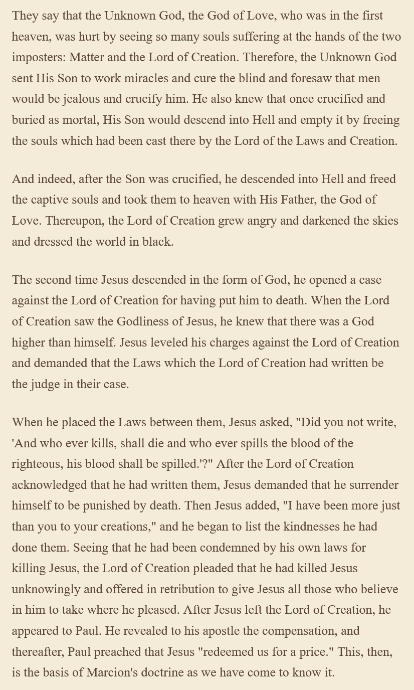 >>42093799"Original sin" is a false, misanthropic concept passed down from the Demiurge, Yaldabaoth. Jesus was a morally upright human religious teacher who achieved gnosis by interfacing with his Aeon archetypal counterpart, Christ.