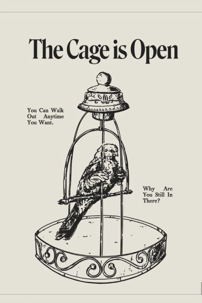 THE CAGE IS OPENTHEY NEVER SAW ITSTUPID SLAVES