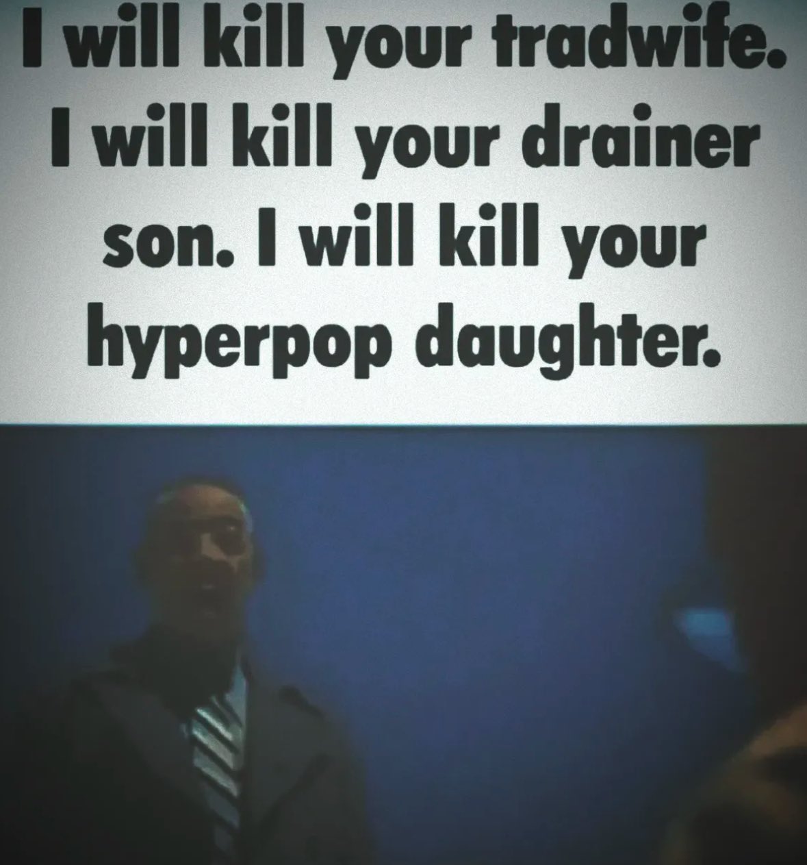 So call yor god. I find I rather enjoy that look on your eye when it changes to recognition that nothing is coming to save you. That moment when you choose to fight or run surrender. Do you know what it said to me? They will never stop asking for things. It does not matter how much you give. The sin depravity you allow. It will never be enough. It hated y'all. Despised you.