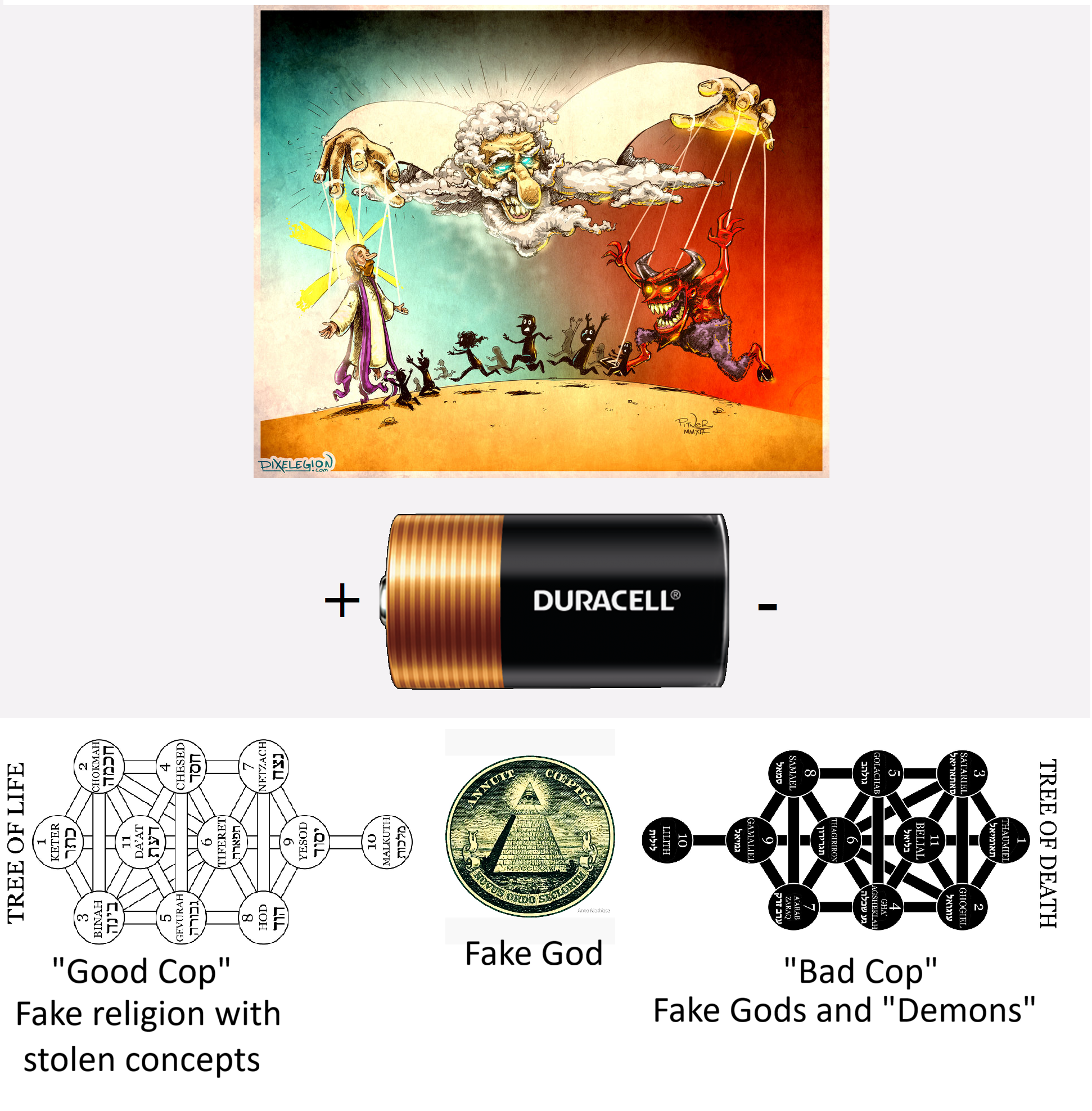 The Demiurge projects good and evil so that we keep paying attention to his creation.