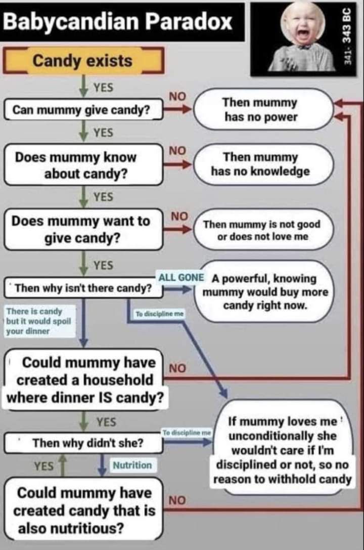 >>42126189Atheist here. This bullshit is cringe.>The problem of evilDoes not exist.Define evil first.All these arguments presume that evil exists or is a coherent thing that can be even defined or agreed by multiple people.>Evil is things I do not likeYour opinion is irrelevant NEXT!>b-b-b- why baby animal in pain in fireDid you just deny evolution? >b-b-b- why baby animal in pain in fireYep not understanding evolution I see>b-b-b- why baby animal in pain in fireAnd this is evil how?>Because my TV indoctrination says so!You are indoctrinated and stupid. NEXT! Nothing evil has happened here. NEXT! NEXT!>b-b-b-b he is not all powerful!OK like putting aside the retardation of real life religions, their retarded need to make their god basically superman on steroids who needs to do even more absurd things every day..... The only logical answer is that there are rules who even a god is subject to. C. S. Lewis hinted at that in Narnia by talking about>The deeper magicSo yea the obvious answer to why god did not kill satan etc is that he is limited. Christians will have meltdowns over this and never admit it however this is the only solution in a world where not every act is 100% according to gods will and he gets angry at humans.Or creates perfect being (Lucifer) who magically corrupt themselves.This is the real problem with god not some magic problem of evil.The real problem of abrahamic religions and the eastern ones is that the universe itself is made in a way that fucks over god or gods and humans.Can god create perfect beings?NOPE! They corrupt themselves and start rebellions.What about humans?NOPE! God can not make a human that will not self corrupt even when he makes themselves perfect.1/2