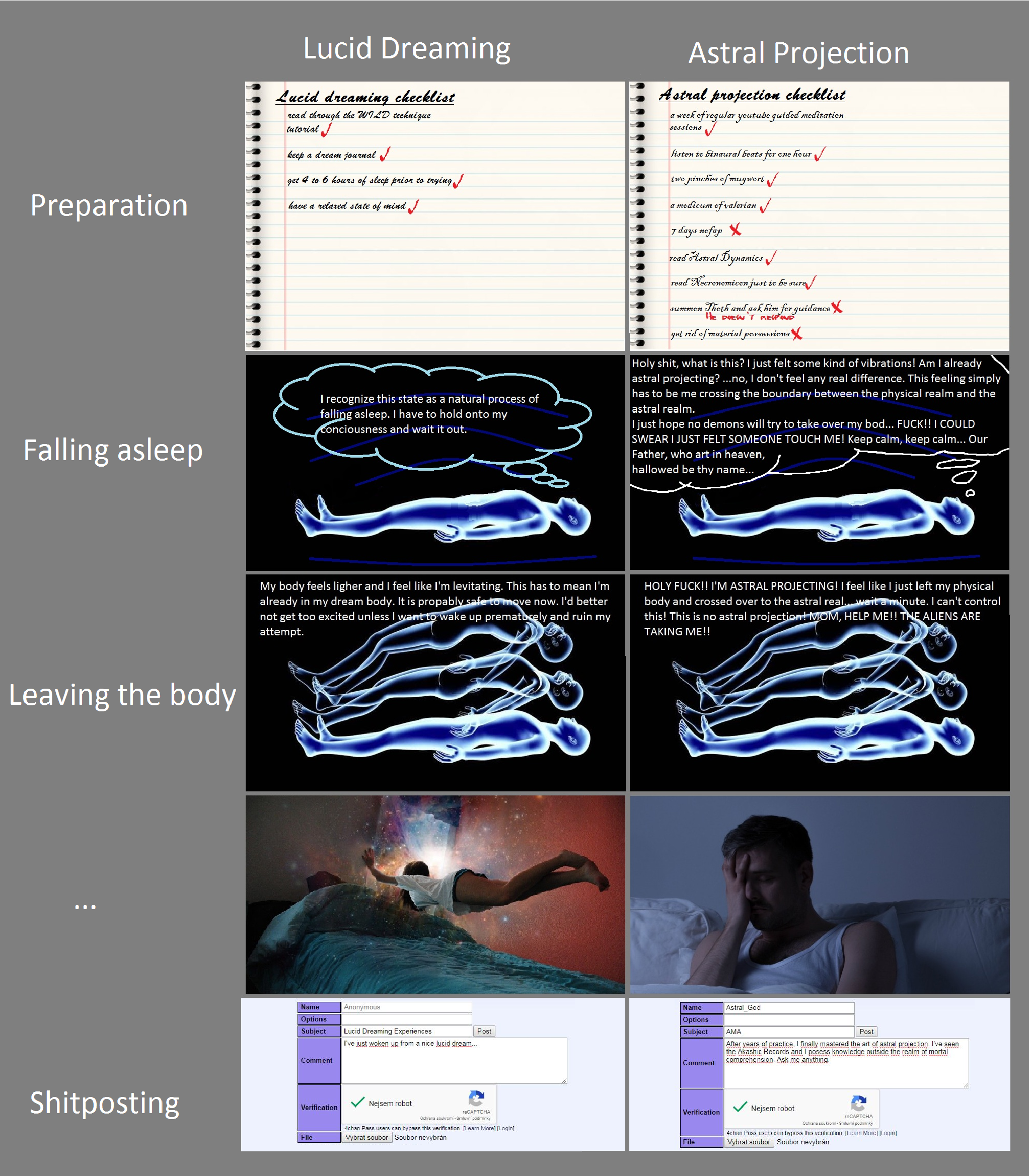 >>42133761Complete none answer.See this shit right here is why people on this board shut down and always fail miserably to debate me. Because this very image explains what /x/ really means when they say they are wizards that use magic.>Dude I cast a money spell then I worked overtime at my job to get some extra paySpell didn't do shit, you working overtime is what got you the extra money.>Dude I cast a spell to ace my next test then I spent the next few weeks studying really hardOnce again the spell didn't do shit, you putting in the time to study is what got you results.This isn't magic. Who brainwashed you into believing this garbage? The spell component of this shit is irrelevant. Completely fucking irrelevant. If it was magic then you would bypass putting any work into whatever the fuck it is you're doing. How is it that you don't see this?If you can't get money by sitting on your ass doing absofuckinglutely nothing via magic then it doesn't work.Literally doesn't get any simpler than that.You know as well as I do that you can't do any actual high fantasy-esque magic, which is the only magic that matters. Like I said, conjure something out of nothing, here in the material world. Perform telekenesis and exert force on objects with your mind. Speak telepathically to me. Have your familiar/demon/angel/god come greet me, I give whatever schizo delusion of your choosing permission to. Astral Project and come visit me in my dreams. Control the elements, ignite a flame using your mind, materialize water into an empty glass. Become corporeal and pass through solid objects. Open rifts in time/space and travel through. Time travel. Manipulate your cells and sprout new limbs, give yourself another pair of arms. Fly. Teleport. Remote view (for real though).I wonder why you can't do anything like this? Why is your 'magic' so fucking lame that people that don't practice it get better results in their day to day life than you who does?