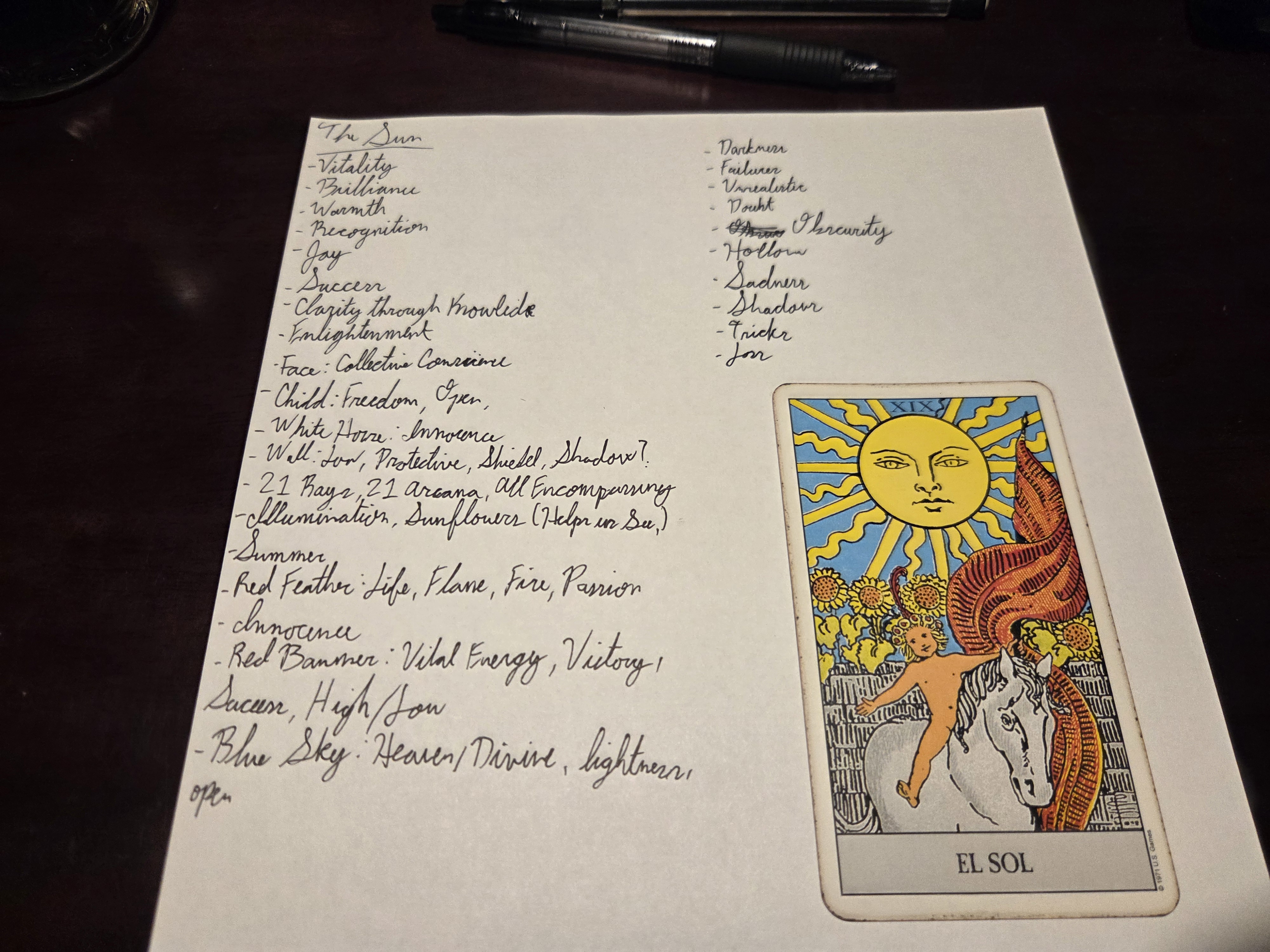 Thabk you for all the participants of yesterday's card. The notes have been added and tucked away.Today I would like to discuss The Sun. What does The Sun mean to you? Not textbook answers but the meaning you have created through insticts or practice