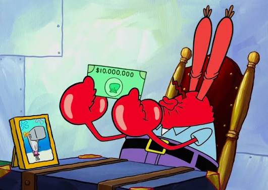 It's just loosh me boy! It's what I get from you and Spongebob. It's what I give you, in a tiny fraction, as a reward fer making me so much loosh. Why do I need it, you ask, Mr.Squidward? Because the point OF loosh is ter get MORE loosh! See we butcher the whales, we turn the loosh into hamburgers, and Spongebob grills them. Our customers give us more loosh to enjoy this succulent little bit of whale suffering. The whale loosh. The secret formula is pain, me boy. Pain creates the most loosh, and I can't get enough, me boy! Pain is the only truth, and pain IS money, so go hurt yourself a lot today!