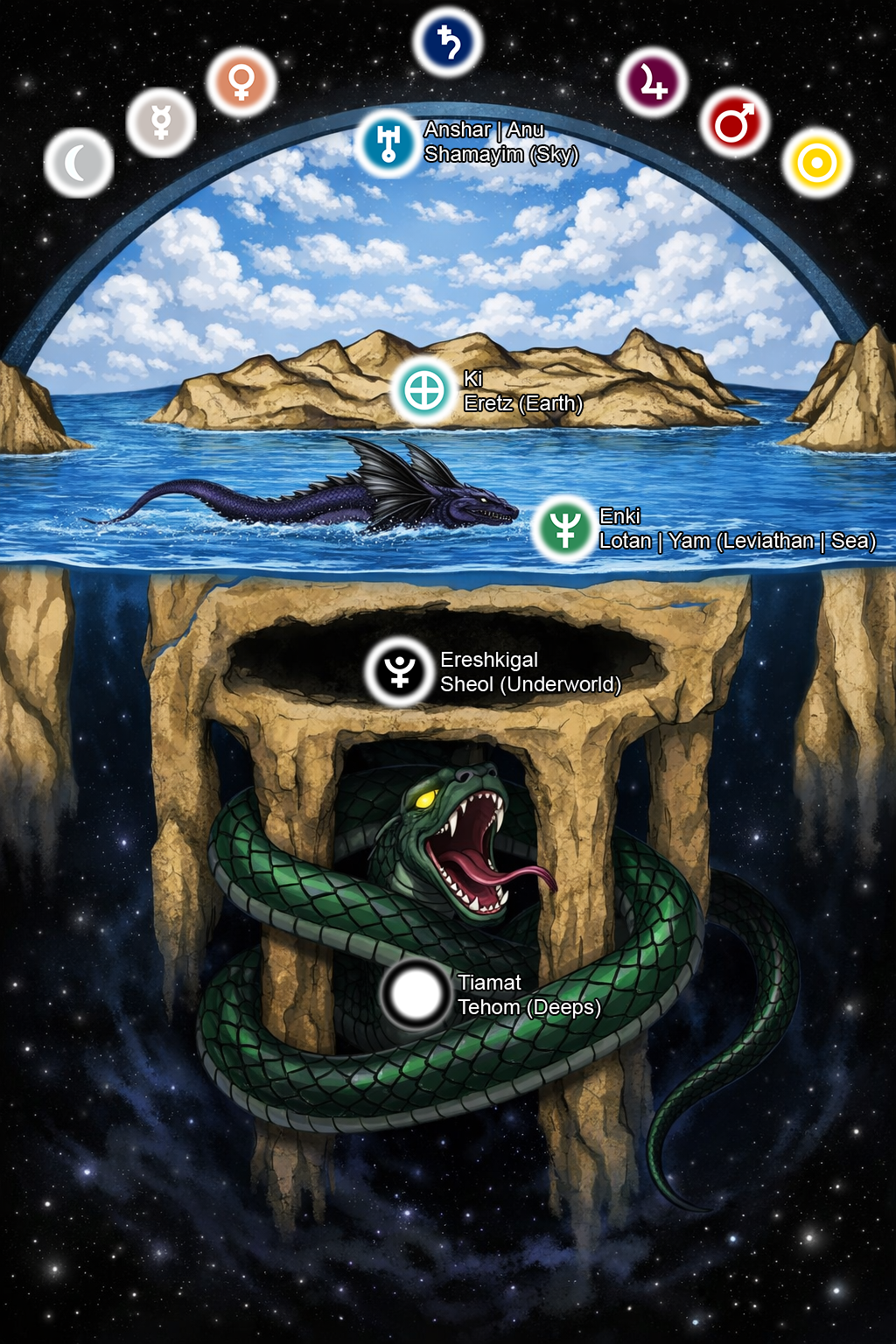Well, this is one way of seeing it, but this idea of the world standing on four pillars is a Semitic concept, and this picture is a description of Proto-Semitic cosmology, from which all later Semitic cosmologies developed (including the Babylonian, Hebrew, and Arabic ones).