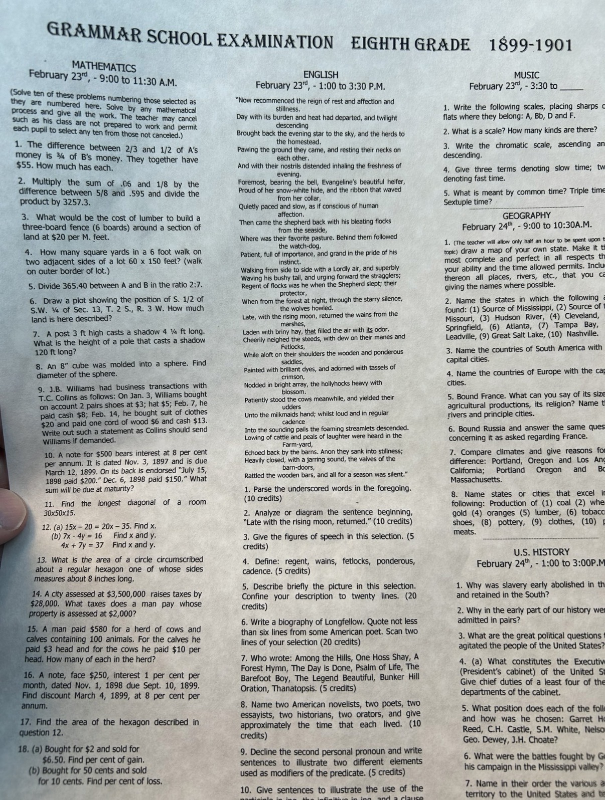 >>42159897This isn't all that intimidating once you understand how the education system was structured in the past. Most of that test is trivia, some of which is outdated. In the math section you get to choose your own questions, so you can do all the easy ones and still pass. Also back then, 50% was fucking passing, so even you fucked up 5 math questions, you would still pass. If updated slightly for the present day, most eight graders would probably still pass that test.
